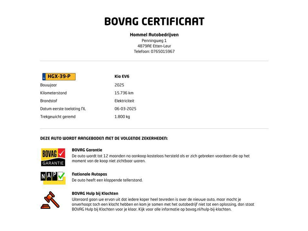 - BOVAG Garantie 12 maanden