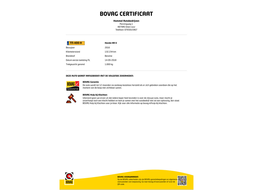 - BOVAG Garantie 12 maanden
