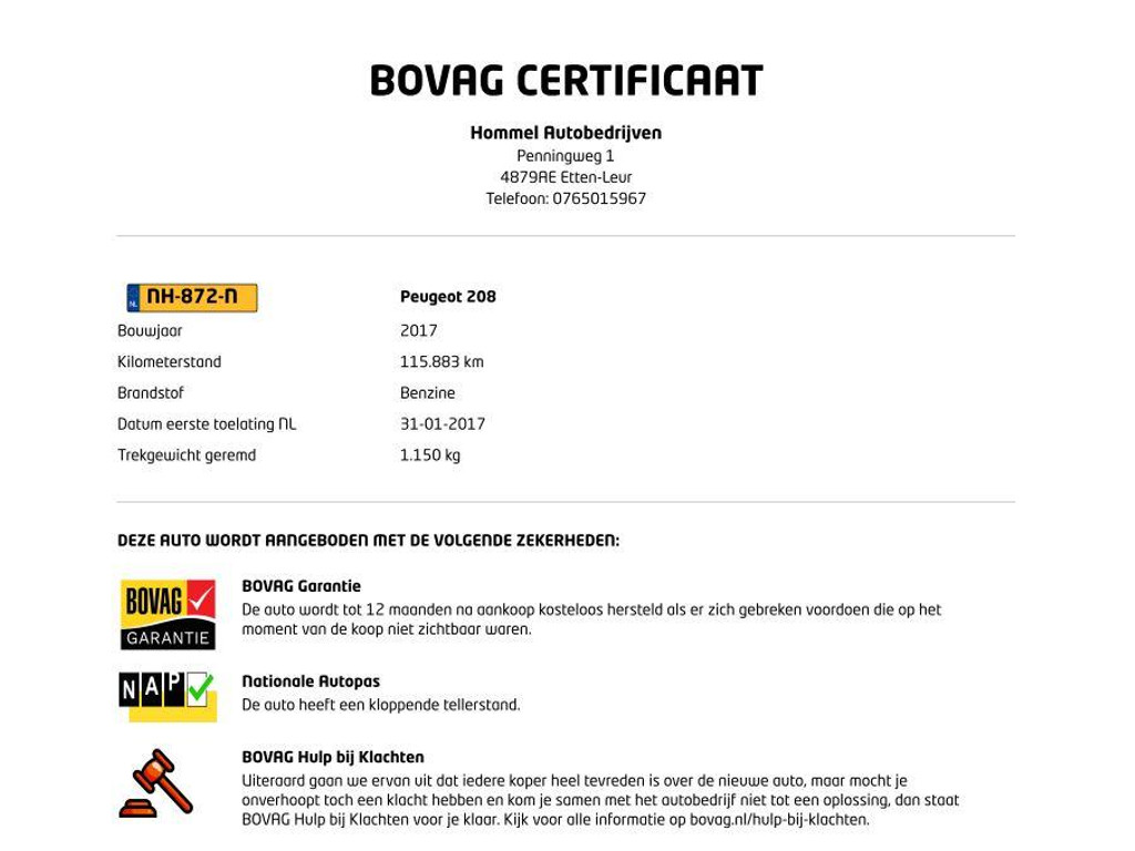 - BOVAG Garantie 12 maanden